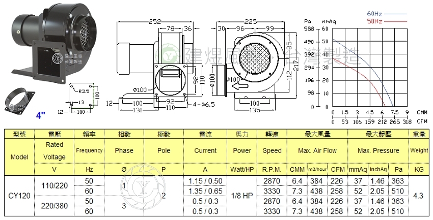 建煜多翼式抽送風機 CY120
